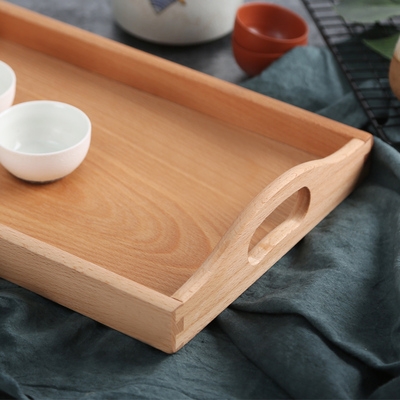 Khay gỗ đặc hai bên Trung Quốc, hình chữ nhật có tay cầm, khay trà, khay vuông gỗ sồi, đĩa ăn, đĩa gỗ bảo vệ môi trường - Tấm
