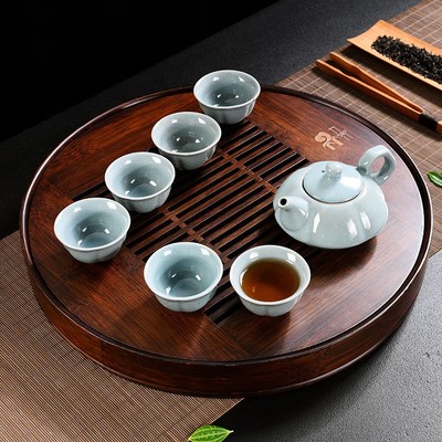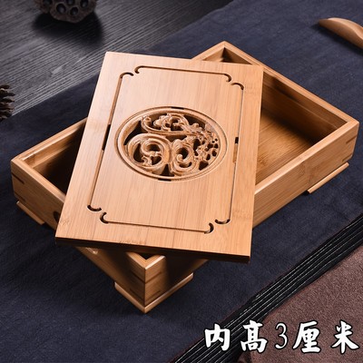 Khay gỗ lớn gia đình bằng tre, gỗ thoát nước Khay trà tròn có thể thoát nước quà tặng khay gỗ thoát nước phụ kiện chứa nước - Tấm