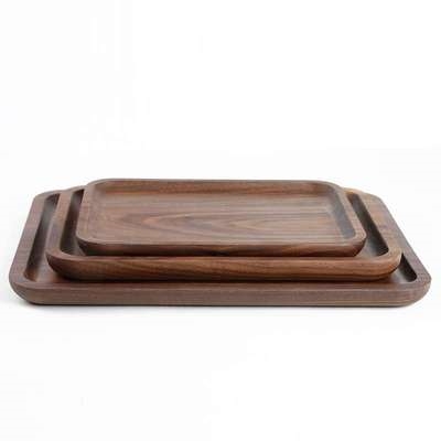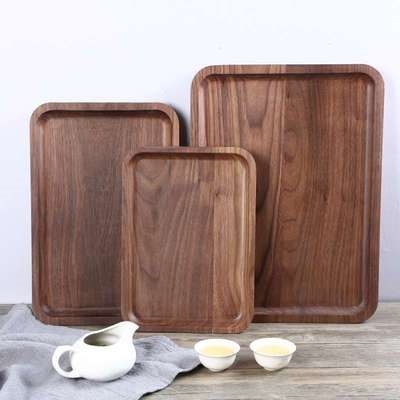 Khay gỗ óc chó cao cấp màu đen Nhật Bản hình chữ nhật bằng gỗ gia đình trái cây đĩa ăn tối nhà hàng khách sạn - Tấm
