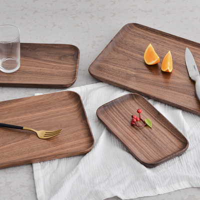 Khay gỗ óc chó đen nguyên tấm, đĩa gỗ kiểu nhật, đĩa gỗ nguyên tấm hình chữ nhật, đĩa ăn, đĩa uống trà, đĩa úp chén, đĩa hoa quả sấy khô - Tấm
