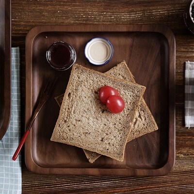 Khay gỗ óc chó màu đen gỗ rắn hình chữ nhật gia đình khay tách trà tách trà phong cách Nhật Bản bộ đồ ăn bằng gỗ - Tấm