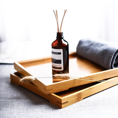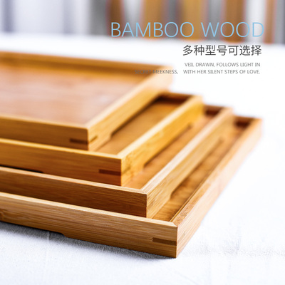 Khay trà hình chữ nhật khay khay gia đình Bắc Âu cốc tre rắn khay thương mại tre nước đĩa gỗ bộ đồ ăn gỗ - Tấm