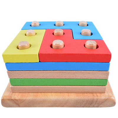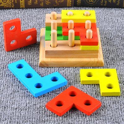 Khối hình học trí tuệ phù hợp với khối xây dựng tháo rời kết hợp bộ cột trẻ em vui nhộn bằng gỗ giáo dục sớm đồ chơi giáo dục - Khối xây dựng