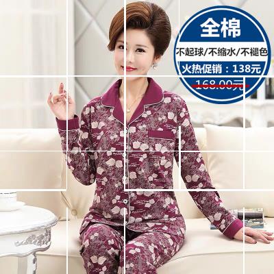 Không có bộ đồ ngủ cotton quý phái nữ mùa đông cotton dài tay bà ngoại mùa xuân và mùa thu mẹ chồng mẹ trung niên và người già - Pyjama