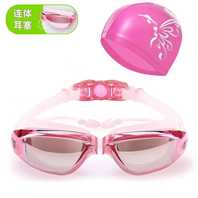 Kính bơi dành cho người lớn không thấm nước kính phẳng chống sương mù HD khung lớn có nút tai Kính bơi chuyên nghiệp cho nam và nữ - Goggles