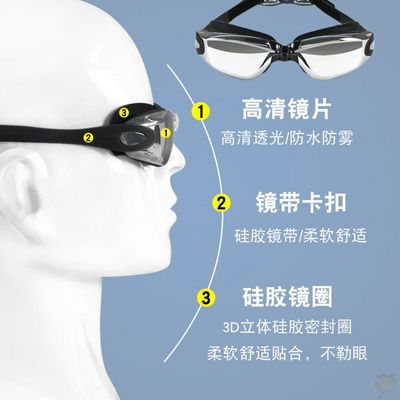 Kính bơi khung lớn cận thị độ nét cao chống nước và chống sương mù Kính bơi cho nam và nữ trẻ em người lớn - Goggles