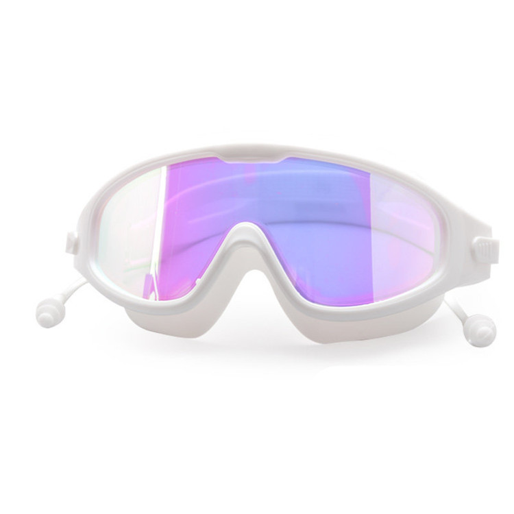 Kính bơi khung lớn dành cho người lớn nam và nữ có ánh sáng phẳng một miếng nút tai mạ tích hợp kính bơi HD chống nước và chống sương mù - Goggles
