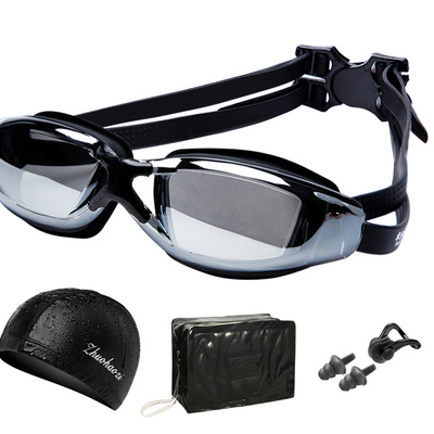Kính bơi mạ điện độ nét cao cho nữ có nút tai, kẹp mũi, mũ bơi, thiết bị bơi, kính bơi chống nước và chống sương mù cho nam - Goggles