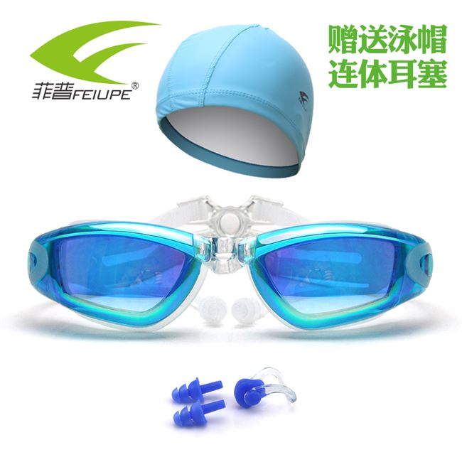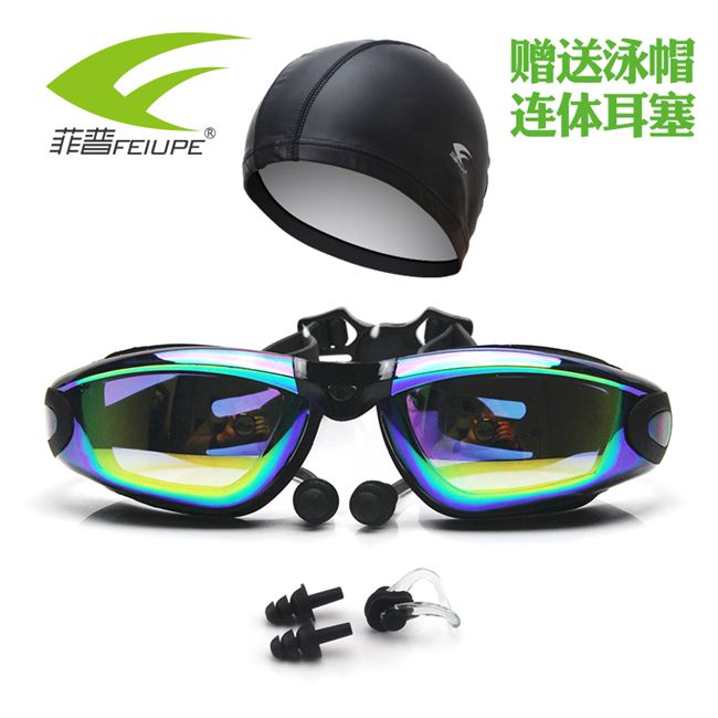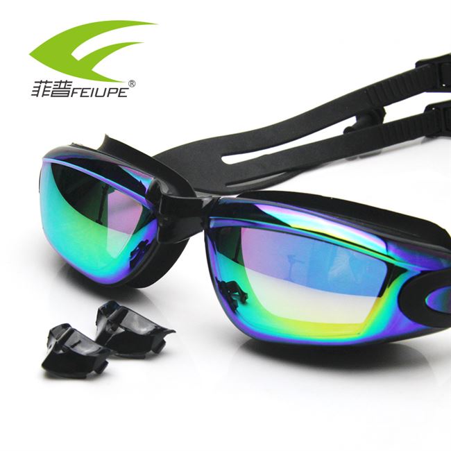 Kính cận thị nhiều màu sắc kính chống thấm nước và chống sương mù kính khung lớn mạ điện nam bơi nữ có nút tai để gửi mũ bơi - Goggles