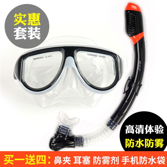 Kính lặn không thấm nước Sambo lặn với ống thở chống sương mù Kính HD nam kính bơi khung lớn kính bơi nữ đầy đủ ống thở khô vây bộ đồ lặn với ống thở - Goggles