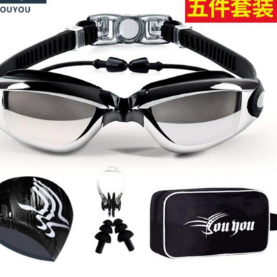 Kính xịt trong suốt cho trẻ em thời trang kính bơi đa năng mạ điện chống sặc nước trẻ em 23 tuổi kính bơi không thấm nước nút tai chống sương mù cao - Goggles