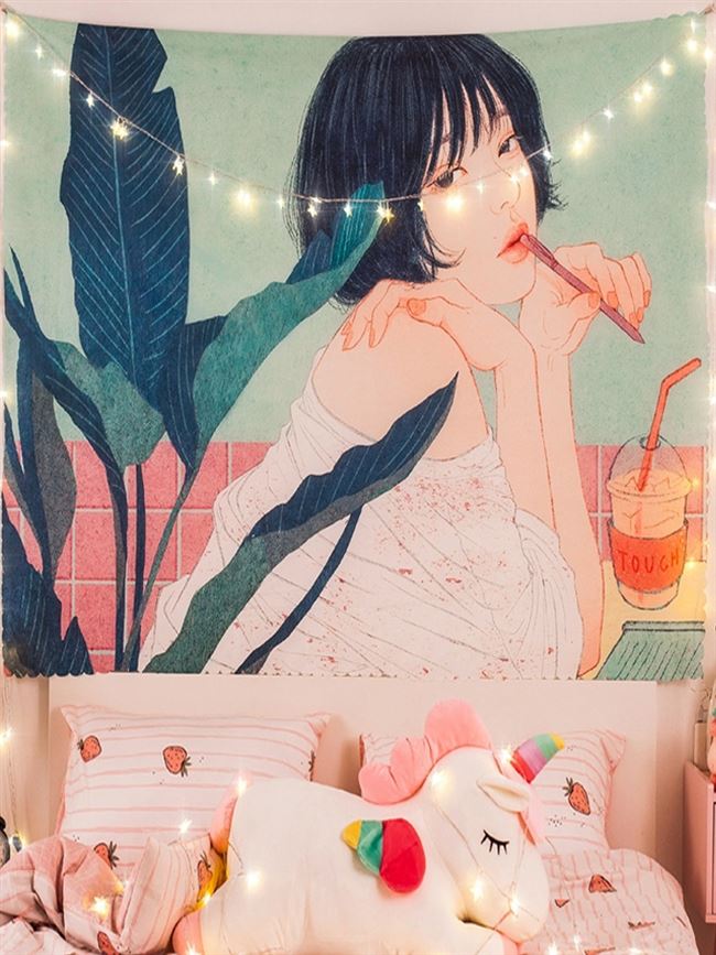 Ký túc xá thảm trang trí nền vải treo vải trong phòng ngủ phong cách Bắc Âu tường đầu giường trang trí tường lưới nền đỏ vải tường - Tapestry