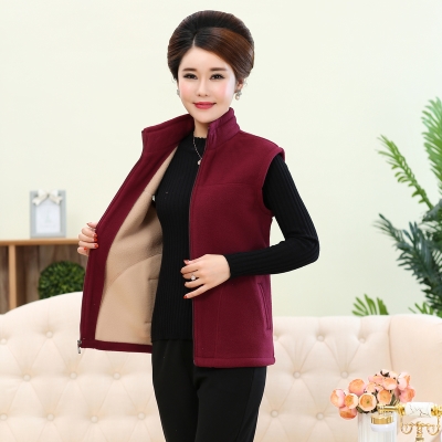 Lắc mùa xuân và mùa thu Vest Vest mặc cổ áo Trung niên của phụ nữ nhung của mẹ bên ngoài vải màu rắn Lấy áo khoác cao cấp - Áo vest
