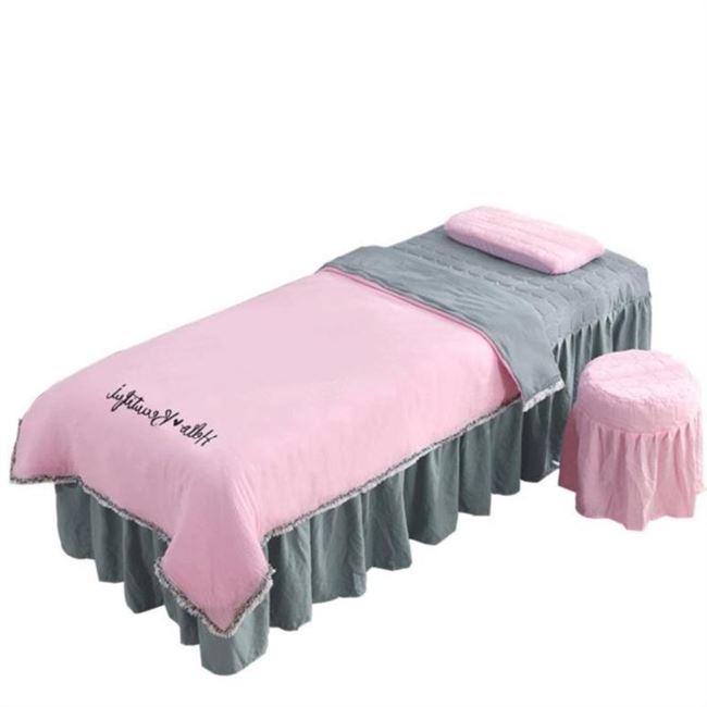 Làm dày Thêu Thẩm mỹ viện Khăn trải giường Bốn mảnh Bông giặt Mùa hè Màu xanh Vật lý trị liệu Massage Giường Giường màu xám Giường đơn giản - Trang bị tấm