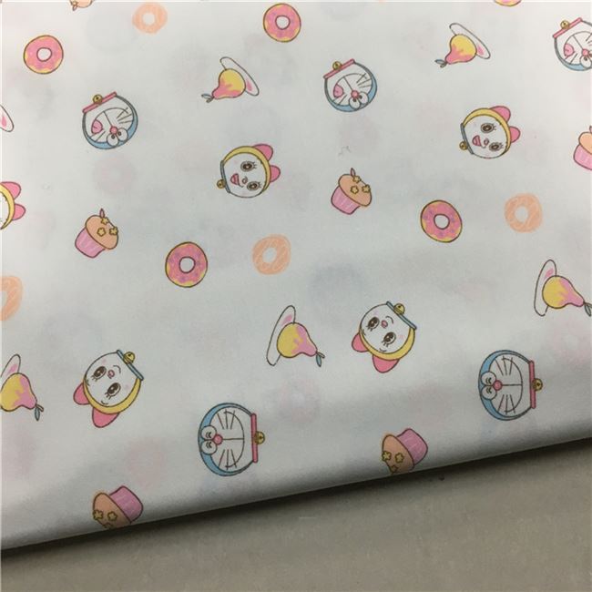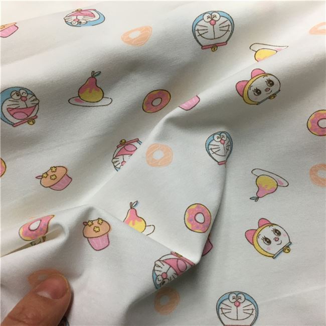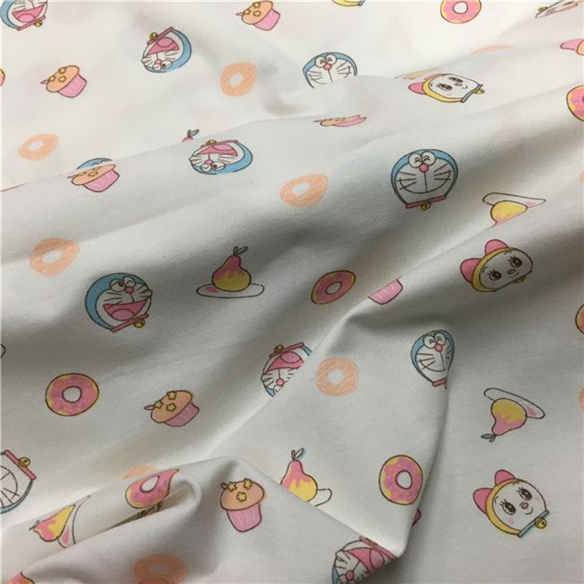Lớp vải dệt kim trắng in bông Doraemon Doraemon vải bông trẻ em mùa hè - Vải vải tự làm