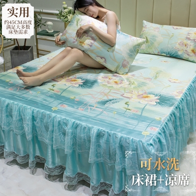 Lụa dành cho trẻ em 1 chiếu điều hòa không khí bằng lụa 1 giường gấp lụa mùa hè chiếu mềm 15 mét lưới bộ đồ ba mảnh mềm màu đỏ - Thảm mùa hè