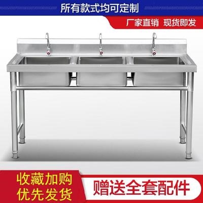 Lưu trữ bồn rửa hai ngăn cho nhà hàng rửa tay thuận tiện Chậu rửa nhà hàng đơn giản Công trường đơn giản ba khe đôi ba ngăn bếp - Phòng bếp