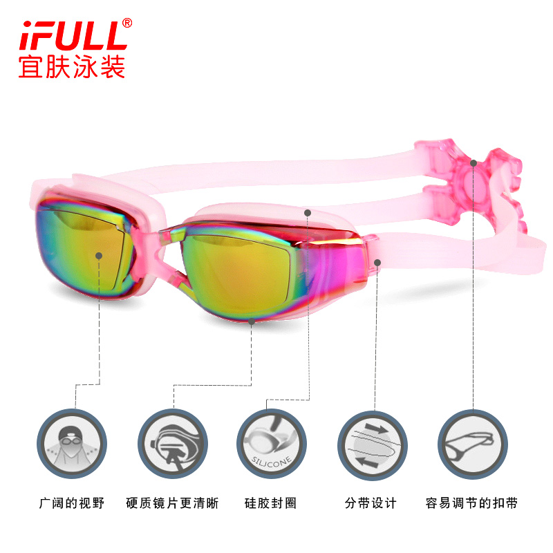 Mạ chống rỉ Kính chống rỉ kính ánh sáng phẳng HD chống sương mù Kính cận thị khung lớn kính người lớn chống rỉ Kính bơi nam và nữ - Goggles