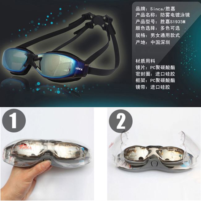 Mạ điện 600 phổ dụng bơi lặn khung lớn chống nước và chống sương mù, chống tia cực tím với kính cận thị nam và nữ có độ - Goggles