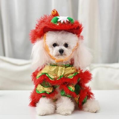Màu đỏ ròng Nhỏ Lễ hội Trăng tròn Mèo con Quần áo Quần áo Năm mới Váy Sư tử Múa Giáng sinh Váy Sư tử Nhỏ Paparazzi Mùa đông - Quần áo & phụ kiện thú cưng