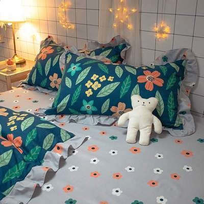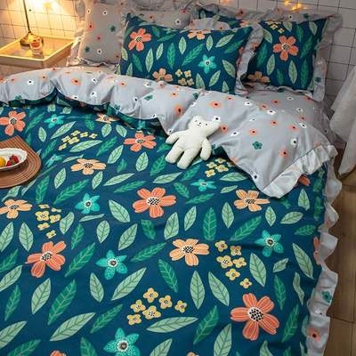 Màu xanh lá cây Rừng rửa bằng vải cotton Giường trải giường Bốn phong cách Hàn Quốc Mục vụ Lá tự do Hoa ba mảnh Polyester đơn giản - Váy Petti