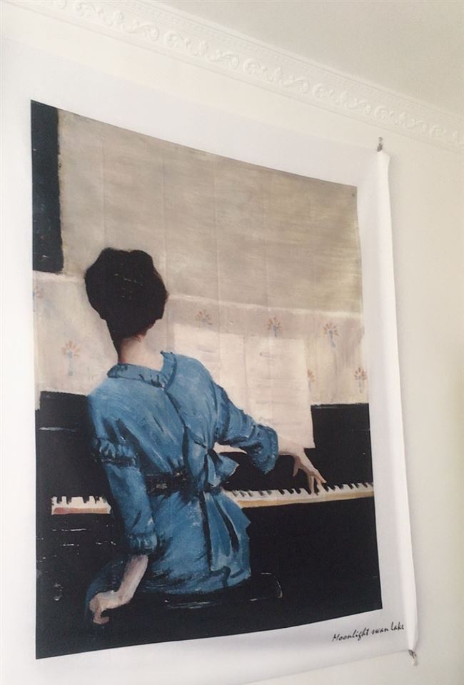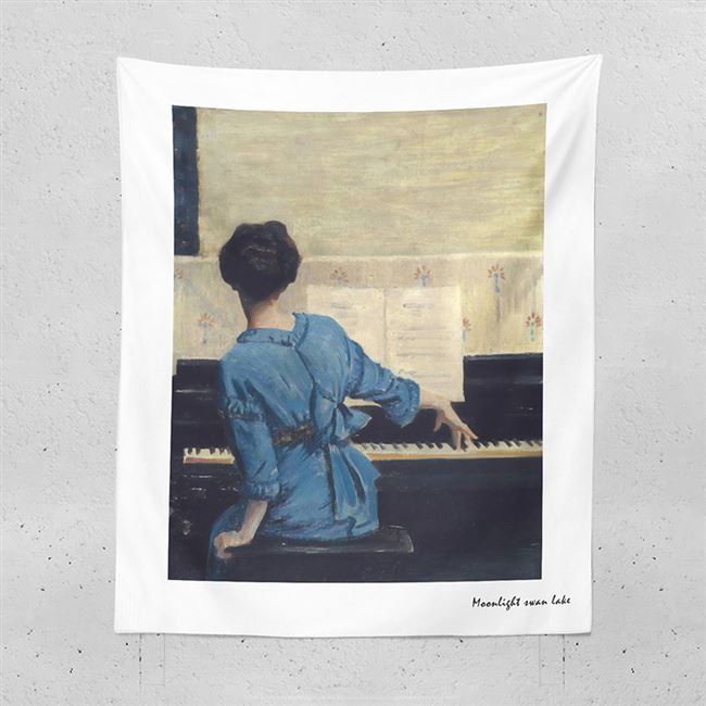 Màu xanh thanh lịch đơn giản đàn piano ánh sáng màu xanh chơi nhỏ ký túc xá tươi mát treo vải Phong cách Bắc Âu trang trí nghệ thuật trang nhã thảm trang trí - Tapestry