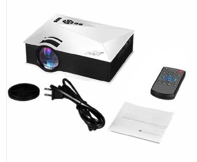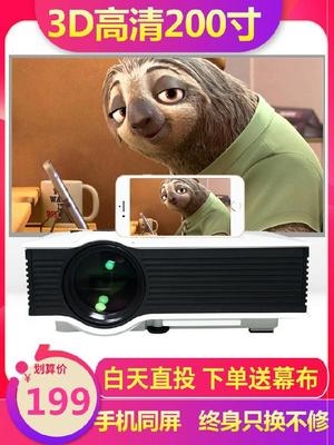 Máy chiếu và điện thoại di động được chiếu vào tường với màn hình. Máy chiếu văn phòng cải thiện nhà phổ quát nhà TV tường phòng khách nội thất - Máy chiếu