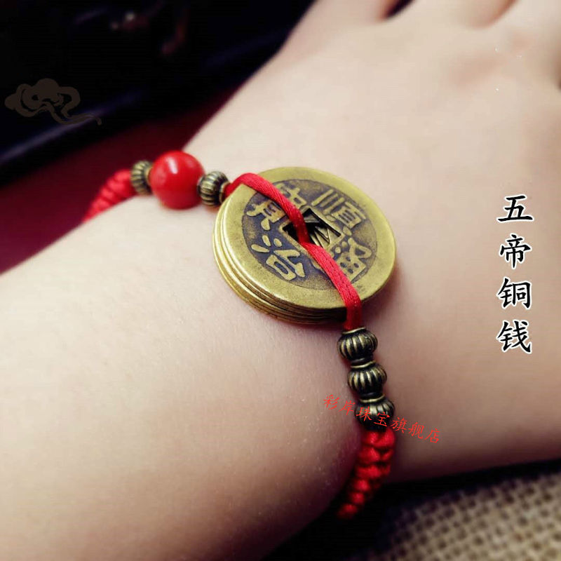 May mắn chuyển giao chống phản diện kim cương nút đồng nguyên chất năm hoàng đế đồng xu đồng xu đầy màu sắc dây thừng màu đỏ vòng tay vòng đeo chân màu đỏ năm - Vòng chân