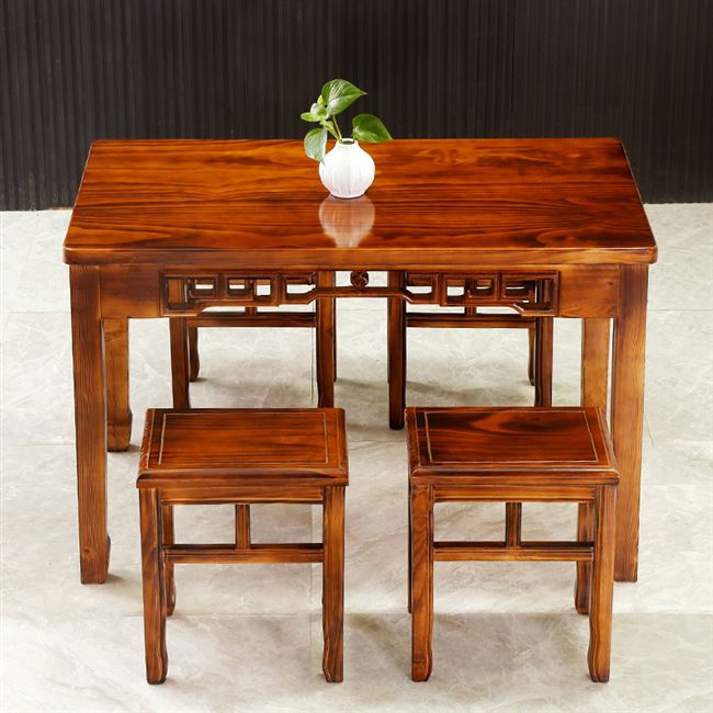 Miễn phí vận chuyển bàn ghế carbon hóa chống ăn mòn đồ nội thất ngoài trời căn hộ nhỏ gỗ rắn đồ ăn nhanh bàn ăn khách sạn bàn ghế cổ kết hợp bộ bàn ghế - Bàn ghế ngoài trời / sân