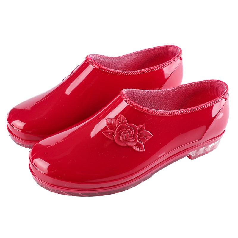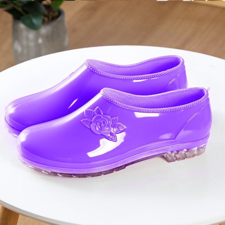 Miệng nông ủng đi mưa của phụ nữ thấp đầu chống trượt thời trang chống thấm nước giày cao su thấp đầu nông giày đi mưa ngắn làm việc nhà bếp mẹ giày cao su - Rainshoes