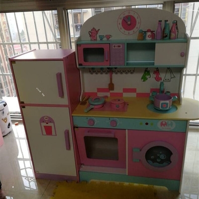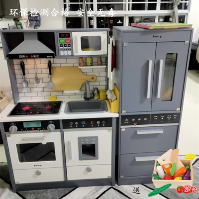 Mô phỏng mới tủ lạnh lớn bằng gỗ chơi nhà bếp đồ chơi nhà bếp cho trẻ em đồ chơi nấu ăn đồ chơi nấu ăn thực sự kết hợp - Phòng bếp