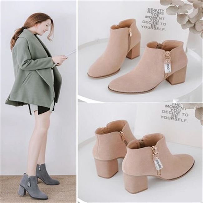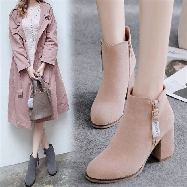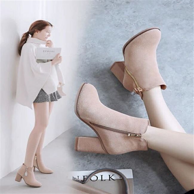 [Mở túi cao su trở lại] giày thời trang giày của phụ nữ mùa đông khởi động của phụ nữ giày cao gót trần giày cao gót dày khởi động giày ống ngắn phụ nữ mùa xuân và mùa thu giày đơn - Giày cao gót