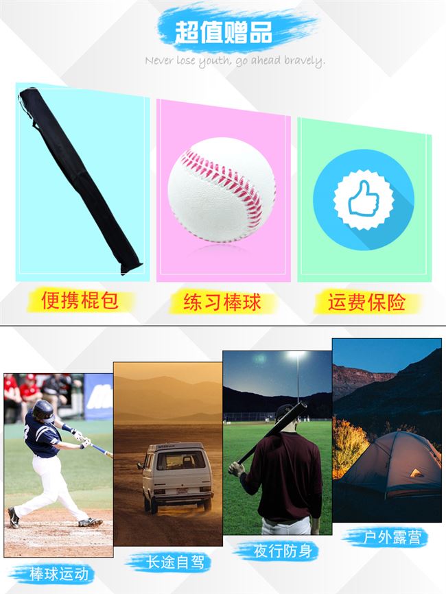 Mới Bóng chày Bat Tự vệ Xe Vũ khí Chiến đấu Bóng chày Bat Nam Bat Stick Bóng mềm Bat Bóng chày Thanh sắt Thép dày - Bóng chày
