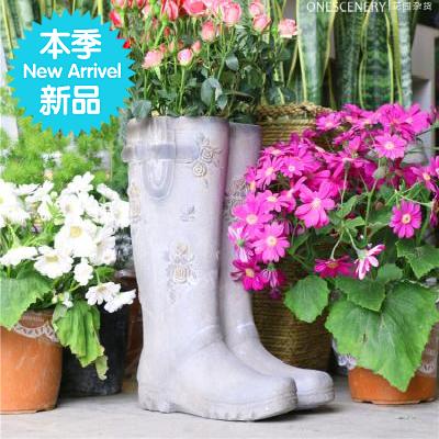 Một cái nhìn của ngôi nhà ủng đi mưa chậu hoa xi măng retro T sáng tạo ô xô ủng hoa đồ trang trí sân vườn tạp hóa - Kính khung