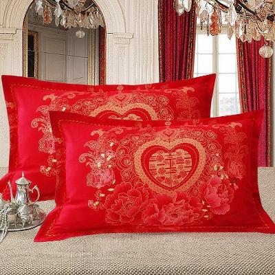 Một cặp gối cưới, một cặp quà tặng cặp vợ chồng mới màu đỏ, áo gối cô dâu lãng mạn. - Gối