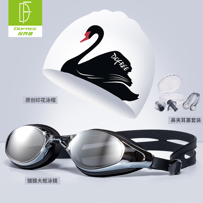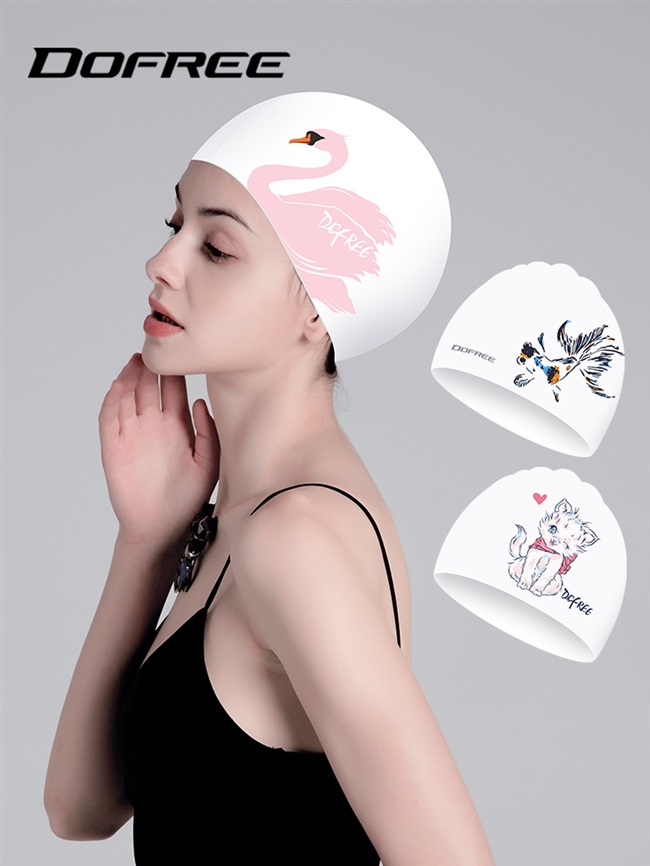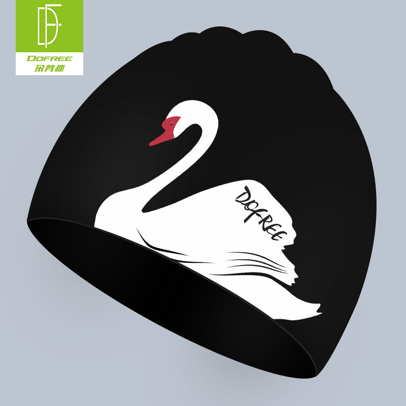 Mũ bơi Thiên nga Silicone Mũ bơi Nữ Tóc dài Bảo vệ tai chuyên dụng Mũ in hình dễ thương Mũ bơi không đầu không thấm nước - Mũ bơi