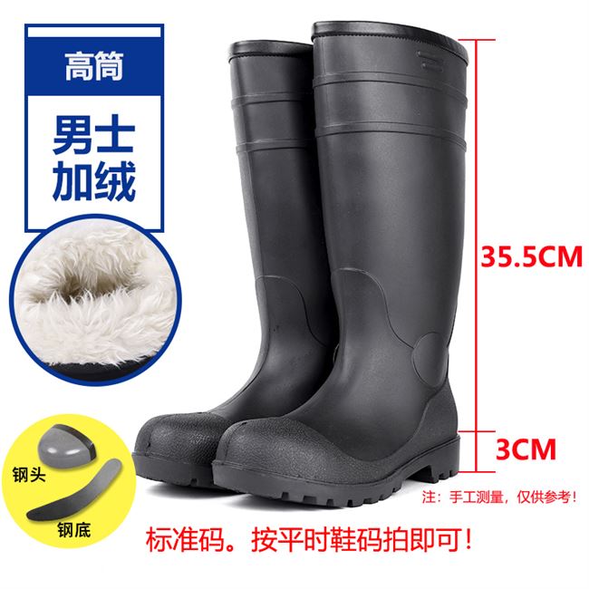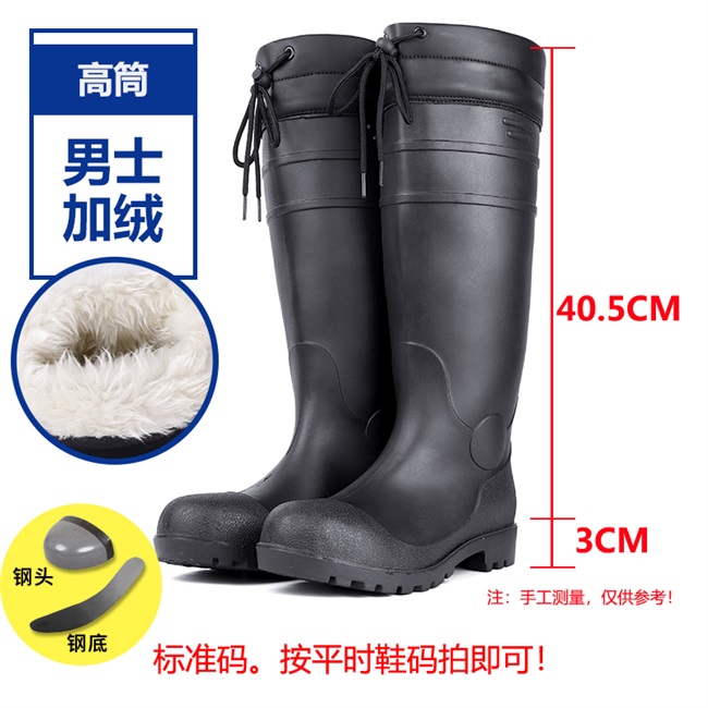 Mùa đông kích thước lớn giày đi mưa nam chống va đập chống đâm thủng thép đế thép đế bảo hộ lao động bảo hộ lao động giày đi mưa giày đi mưa cộng với nhung ấm giày nước bông - Rainshoes