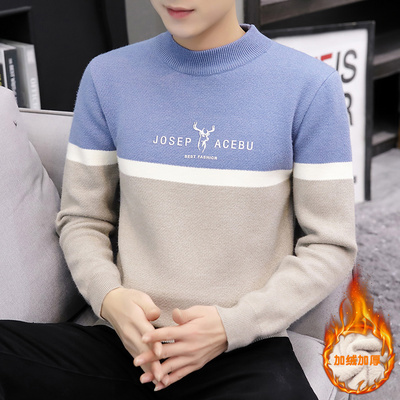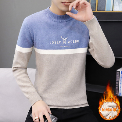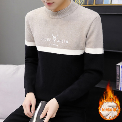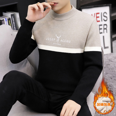 Mùa đông một cộng với áo len dày nhung cho nam áo len ấm áp cao nửa cổ áo dệt kim chạm đáy xu hướng quần áo nam - Áo len cổ tròn