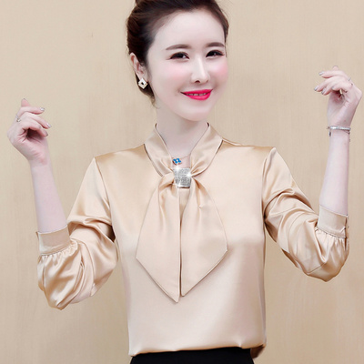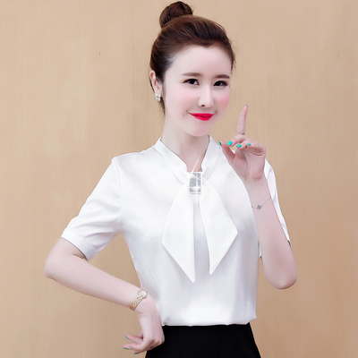 Mùa hè 2020 mới kim cương sáng phong cách nước ngoài áo sơ mi nữ nhỏ tay áo satin satin thời trang hàng đầu khí chất chuyên nghiệp áo trắng - Áo sơ mi chiffon ren