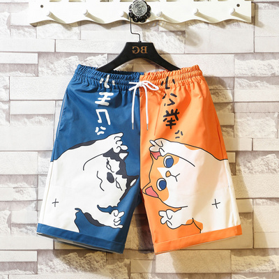 Mùa hè nóng cặp đôi quần đi biển rộng rãi của nam giới cộng với kích thước kỳ nghỉ bên bờ biển in ấn quần short nữ quần bơi nhanh khô - Quần bãi biển