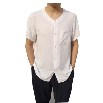 Mùa hè trung niên và cao tuổi làm áo thun nam cardigan cotton lụa cotton size lớn cộng với đồ ngủ mặc nhà ngắn tay màu trắng béo - Pyjama