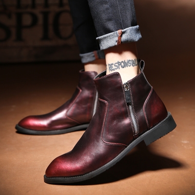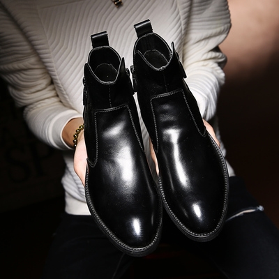 Mùa thu giày da mũi nhọn giày cao cổ nam xu hướng dây kéo bên váy giày cao cổ giày da đế mềm tất cả màu đen phong cách Anh bốt ngắn - Giày ống