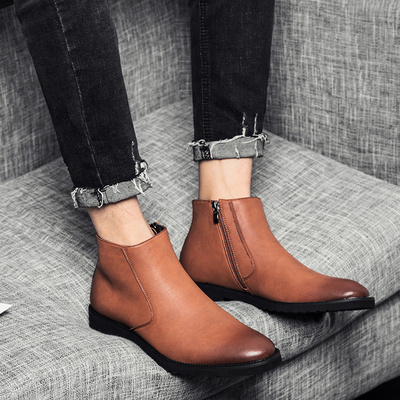 Mùa thu Martin khởi động của nam giới thời trang mũi nhọn giày cao cổ dây kéo bên cao giày da công sở giày bốt da Chelsea - Giay cao
