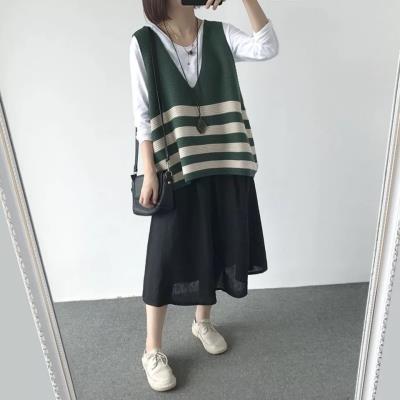 Mùa thu phong cách mới cộng với size áo ghi lê vest áo rời cổ chữ V sọc đan áo ghi lê áo len vest nữ ngọn - Áo vest