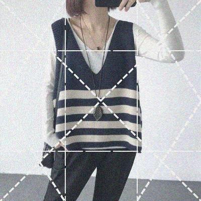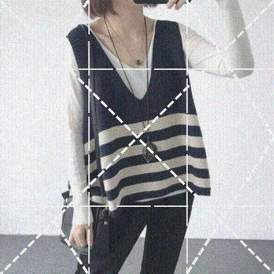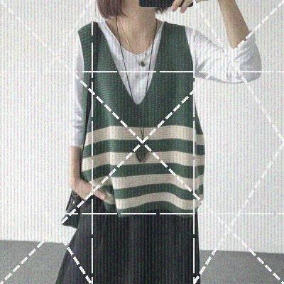 Mùa thu phong cách mới cộng với size áo ghi lê vest áo rời cổ chữ V sọc đan áo ghi lê áo len vest nữ ngọn - Áo vest