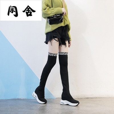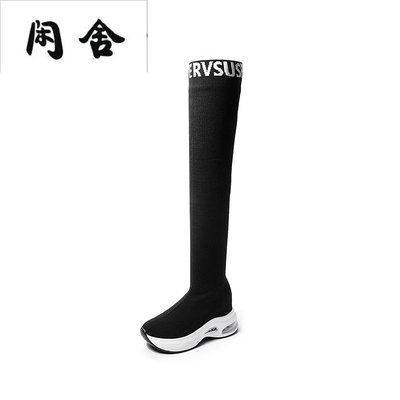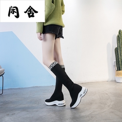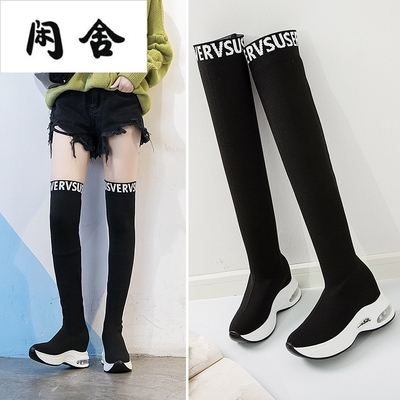 Mùa thu và mùa đông 2020 mới ủng trên đầu gối cho trẻ em giày bốt chữ cái đế dày bay dệt bình thường giày cao cổ của phụ nữ thời trang tất cả các kết hợp - Giày cao gót