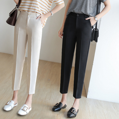 Mùa xuân và hè phù hợp với quần nữ chín điểm ống khói quần học sinh lỏng lẻo Hàn Quốc chuyên nghiệp quần thẳng cao eo quần harem - Quần Harem