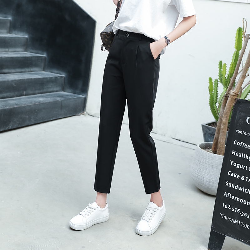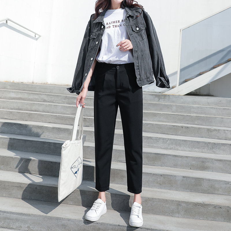 Mùa xuân và mùa thu mẫu nhỏ chân phù hợp với quần nữ chín điểm xuống quần giản dị mùa hè phần mỏng eo cao quần harem là quần củ cải mỏng - Khởi động cắt