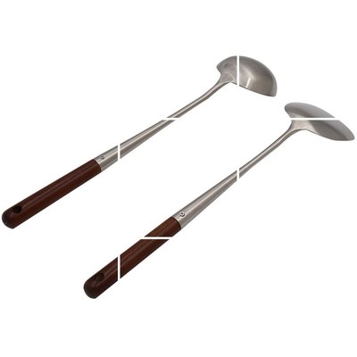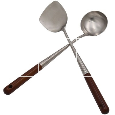 Muỗng chiên và xẻng chiên Dao nấu ăn gia dụng bằng thép không gỉ 304, bộ đồ dùng nhà bếp tay cầm dài bằng gỗ xẻng muỗng - Phòng bếp