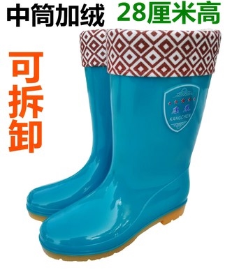 Nam cộng với bông cộng với phân bón cộng với giày đi mưa cực lớn cộng với nhung ấm ủng đi mưa đơn giày đi mưa đơn cực lớn giày cao su ống giữa - Rainshoes